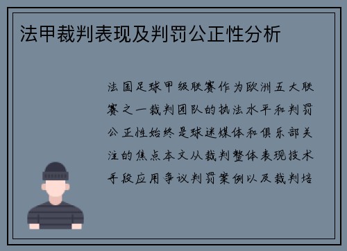法国足球甲级联赛作为欧洲五大联赛之一,裁判团队的执法水平和判罚公正性始终是球迷、媒体和俱乐部关注的焦点。本文从裁判整体表现、技术手段应用、争议判罚案例以及裁判培养体系四个维度展开深入分析,结合具体赛事...